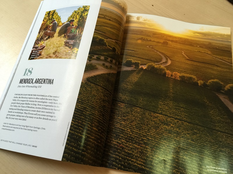 El pasado mes de abril, National Geographic sacó una edición especial para los Estados Unidos titulada ‘100 places that will change your life’ (100 lugares que te cambiaran la vida) y The Vines of Mendoza fue elegida como uno de ellos. Queremos compartir esta noticia y hacerla pública ya que, no sólo representa un logro para The Vines, sino un reconocimiento para la Provincia de Mendoza y especialmente para el Valle de Uco, como una de las regiones vitivinícolas más importante del mundo.